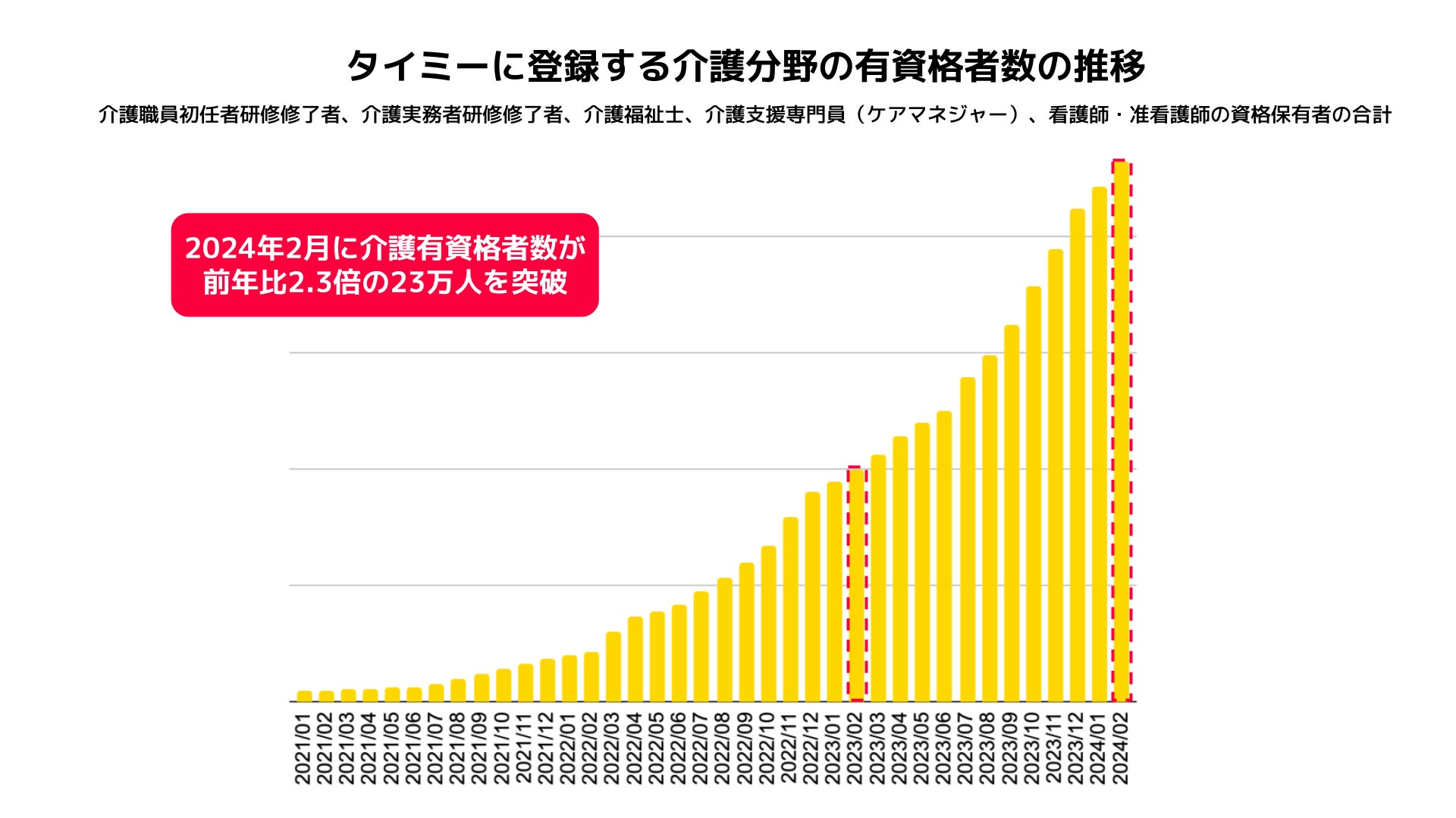 【介護業界におけるスキマバイト拡大の要因②:タイミー上の介護有資格者数が23万人を突破】