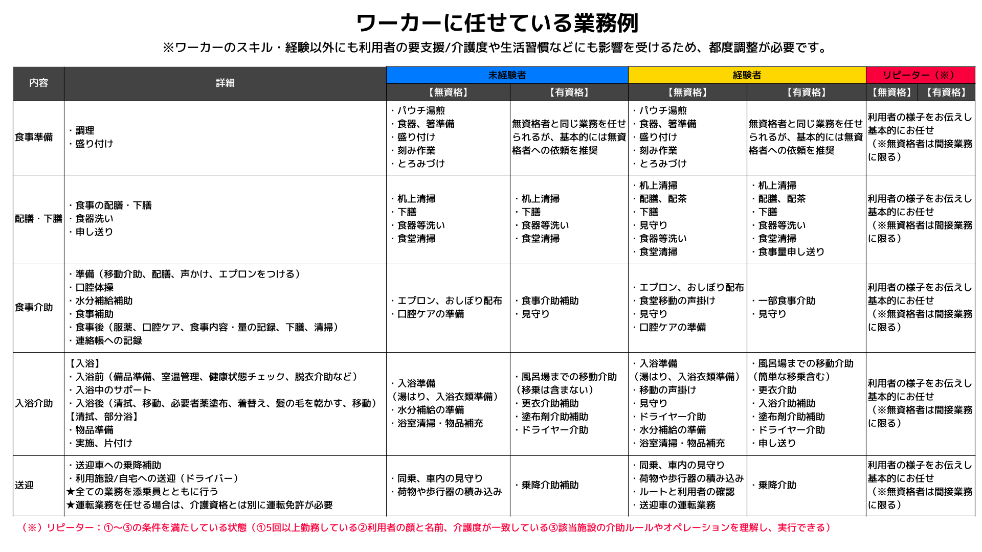 【介護業界におけるスキマバイト拡大の要因①:保有資格やスキルに応じた業務の切り出し】