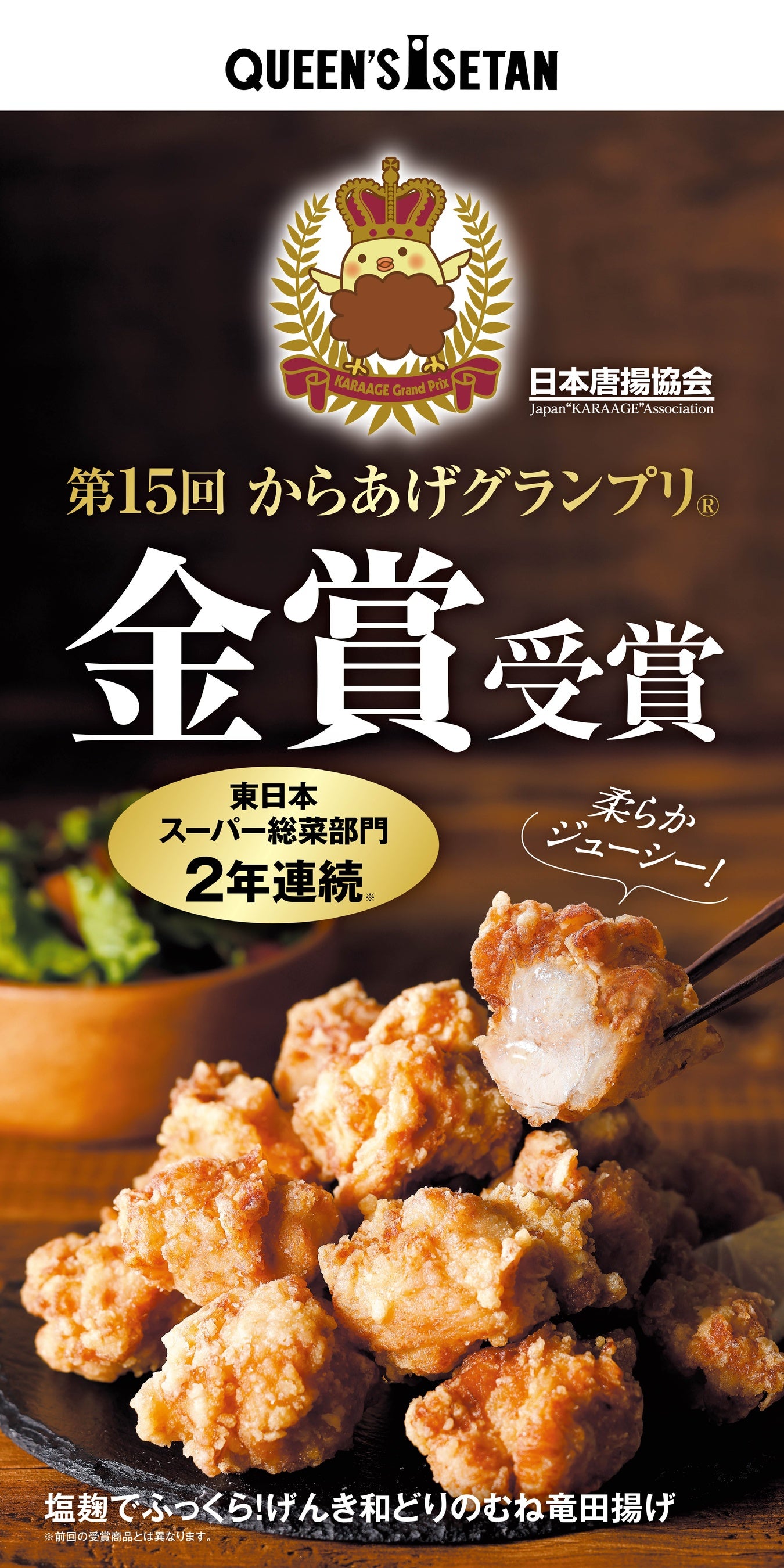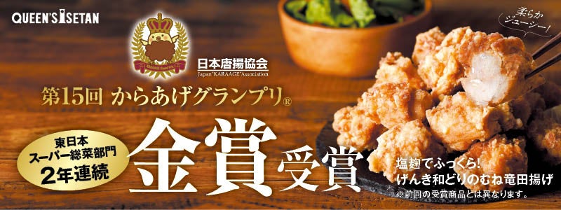 第15回からあげグランプリ®東日本スーパー総菜部門にてクイーンズ伊勢丹の唐揚げが2年連続金賞受賞!「塩麹でふっくら!げんき和どりのむね竜田揚げ」