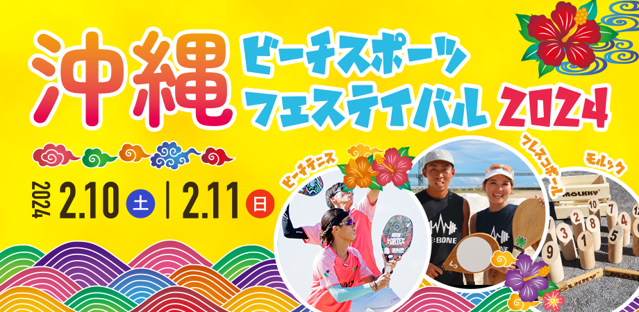今年度が初開催となる『沖縄ビーチスポーツフェスティバル2024』。フレスコボール、ビーチテニス、ビーチモルックという三競技をペアで横断的に参加し、ランキングポイントを競うという新感覚のビーチスポーツの祭典が始まります。見事優勝に輝いたペアには、初代「KING OF BEACH SPORTS」の称号が与えられることに。