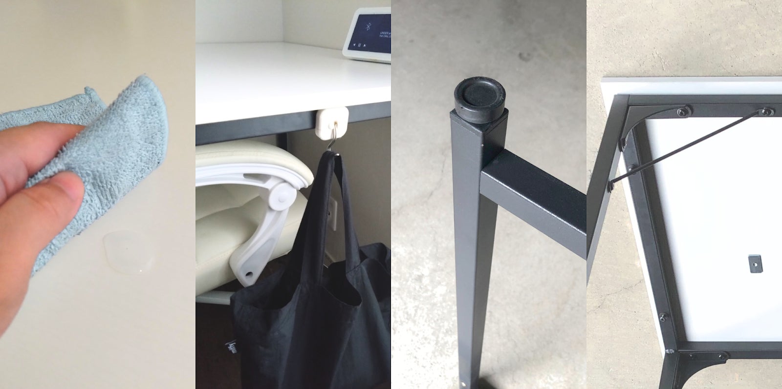 マウスを激しく動かしても、飲食物をこぼしても長く使えるように、耐久性や汚れに強いメラミン樹脂の天板を採用