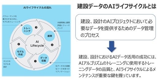 建設のデジタル化によるDXを推進するためには、建設に関わる膨大なデータを適切に管理することで、AIに向けたデータ活用の準備を進めることが重要です。AIにおけるデータプラットフォームには、AIデータの源となる、各分野に分散されている大量かつ多岐にわたるデータドリブンのためのデータを効率的かつ安全に収集、保存、管理することが求められます。