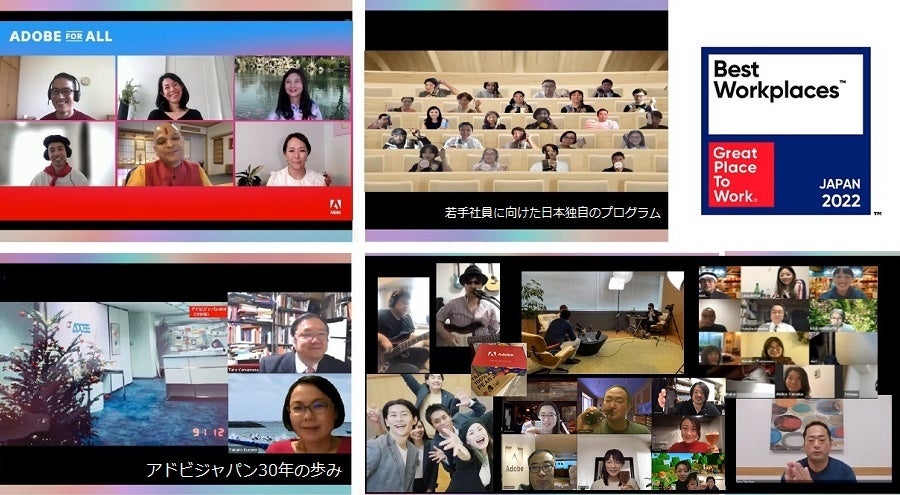 アドビ株式会社 代表取締役社長 神谷知信は次のように述べています。「アドビは新型コロナウイルス感染症のパンデミックという前代未聞の状況下においても、社員のことを第一に考え、働きがいのある職場環境のための取り組みを積極的に行ってきました。その結果、このような評価を得られたことを嬉しく思うとともに、アドビジャパンのチームを誇りに思います。アドビは今後も社員やその家族の安全・健康を最優先に考え、様々な取り組みや制度設計を進めてまいります。」