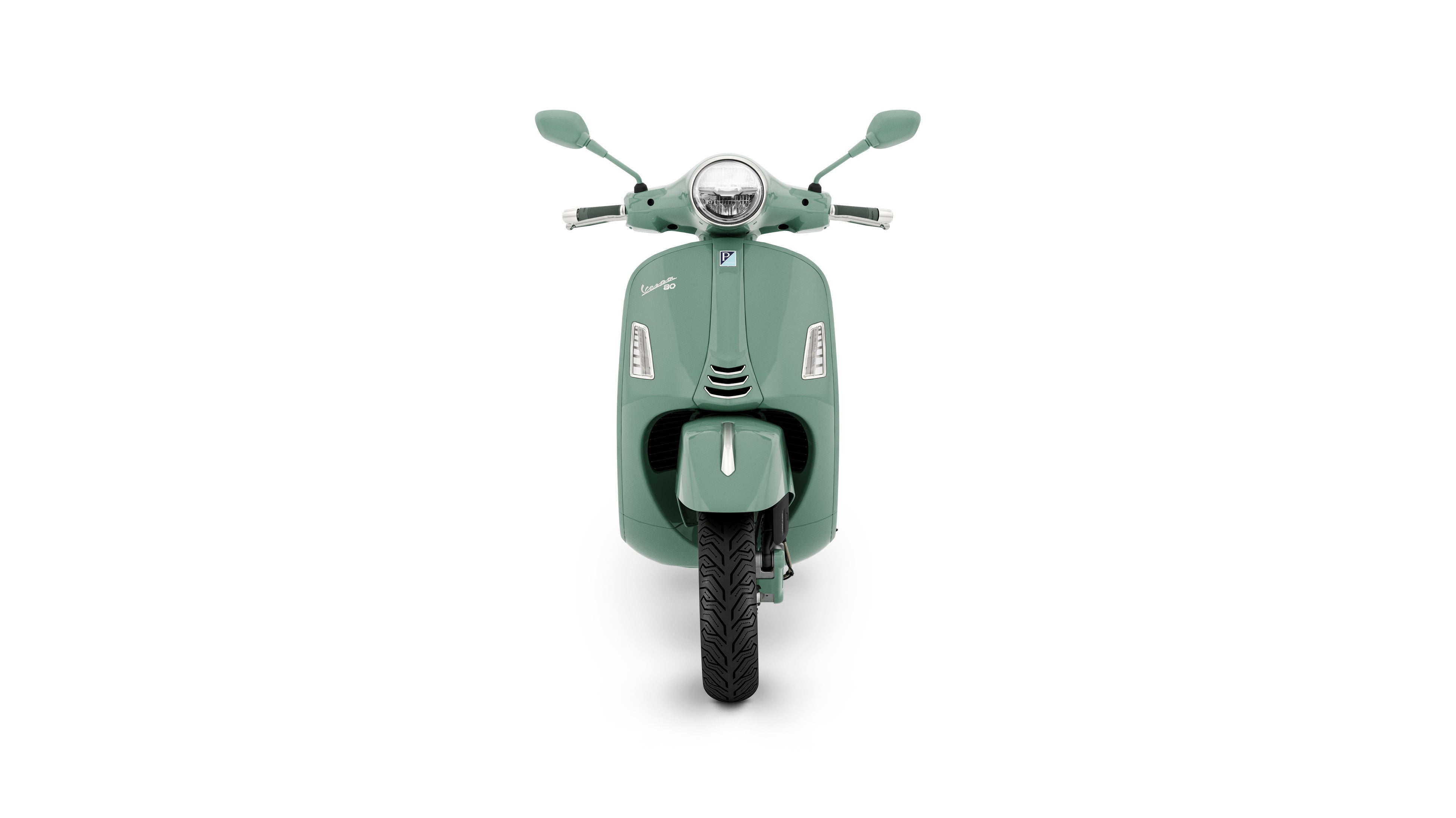 フロントシールドには、伝統のVespaロゴに「80th」エンブレムがあしらわれ、レッグシールド内側のグローブボックスリッドには、この大切な節目を祝う「80 years of Vespa Est. 1946」バッジが装着されています。