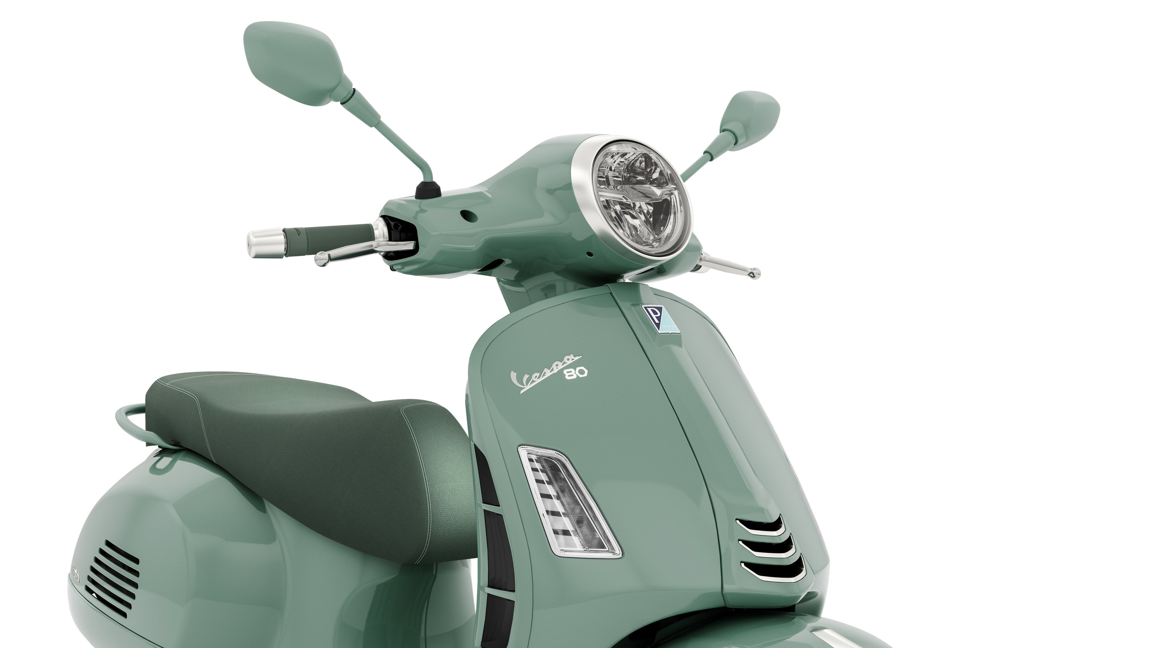 ベスパ80THへの特別な演出は、戦後間もない当時に実用性と機能性という価値観において、シンプルでありながら革新的だった製品の世界観を反映し、様々なディテールにまで及んでいます。レッグシールドのモールや、パッセンジャーグラブハンドル、バックミラー、ハンドルバースイッチカバー、フロントサスペンションリンケージカバーなどは、ボディカラーと同系色のサテン仕上げにペイントされ、光沢のあるボディのペイントと相まった印象的な仕上がりとなっています。さらに、ステッチ装飾されたシート、レッグシールド内のカバー、そしてハンドルグリップなどが濃いグリーン仕上げによるトーンオントーンによってさらに引き立てられ、このスペシャルエディションはミニマルでありながら大胆なルックスを特徴としています。
