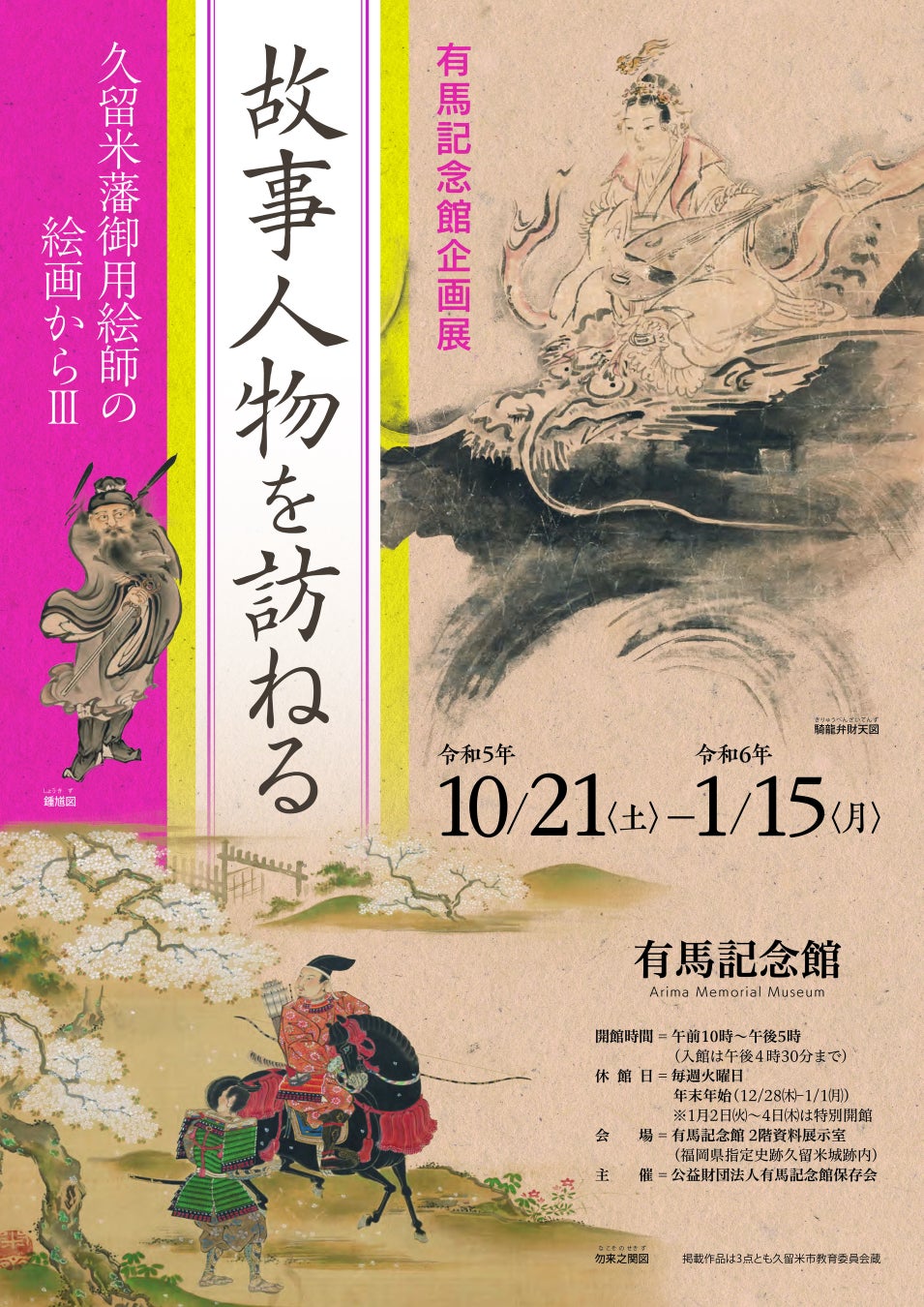 ≪福岡県久留米市≫有馬記念館企画展「故事人物を訪ねる―久留米藩御用絵師の絵画からⅢ―」を開催。