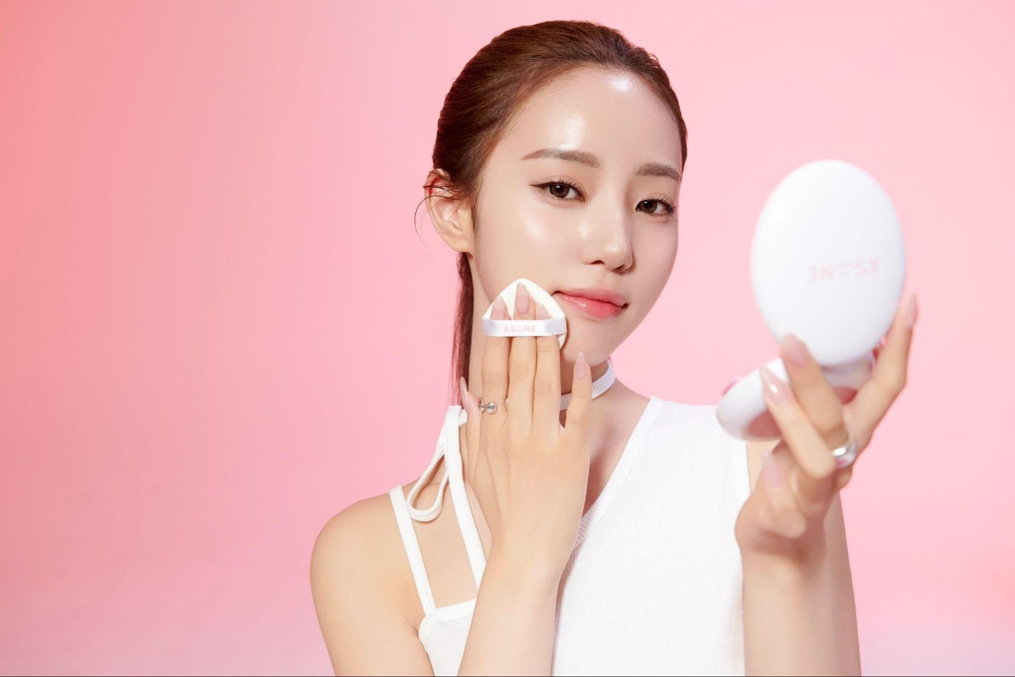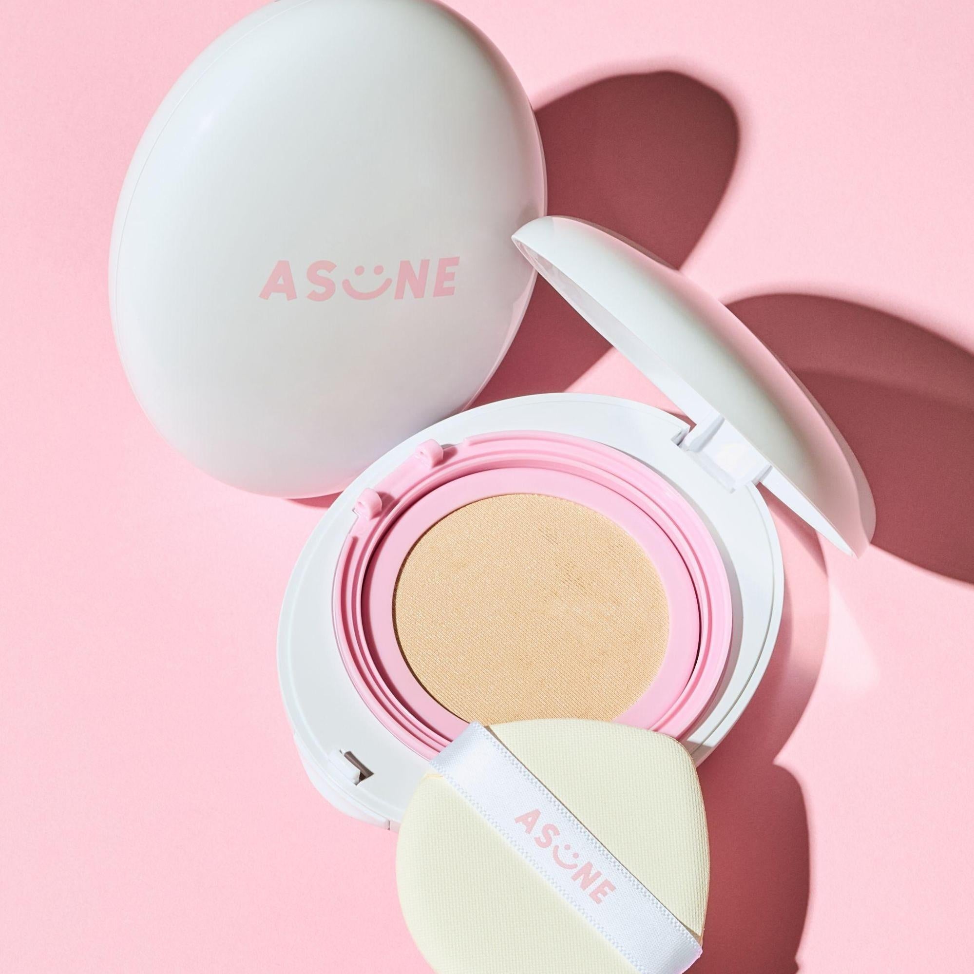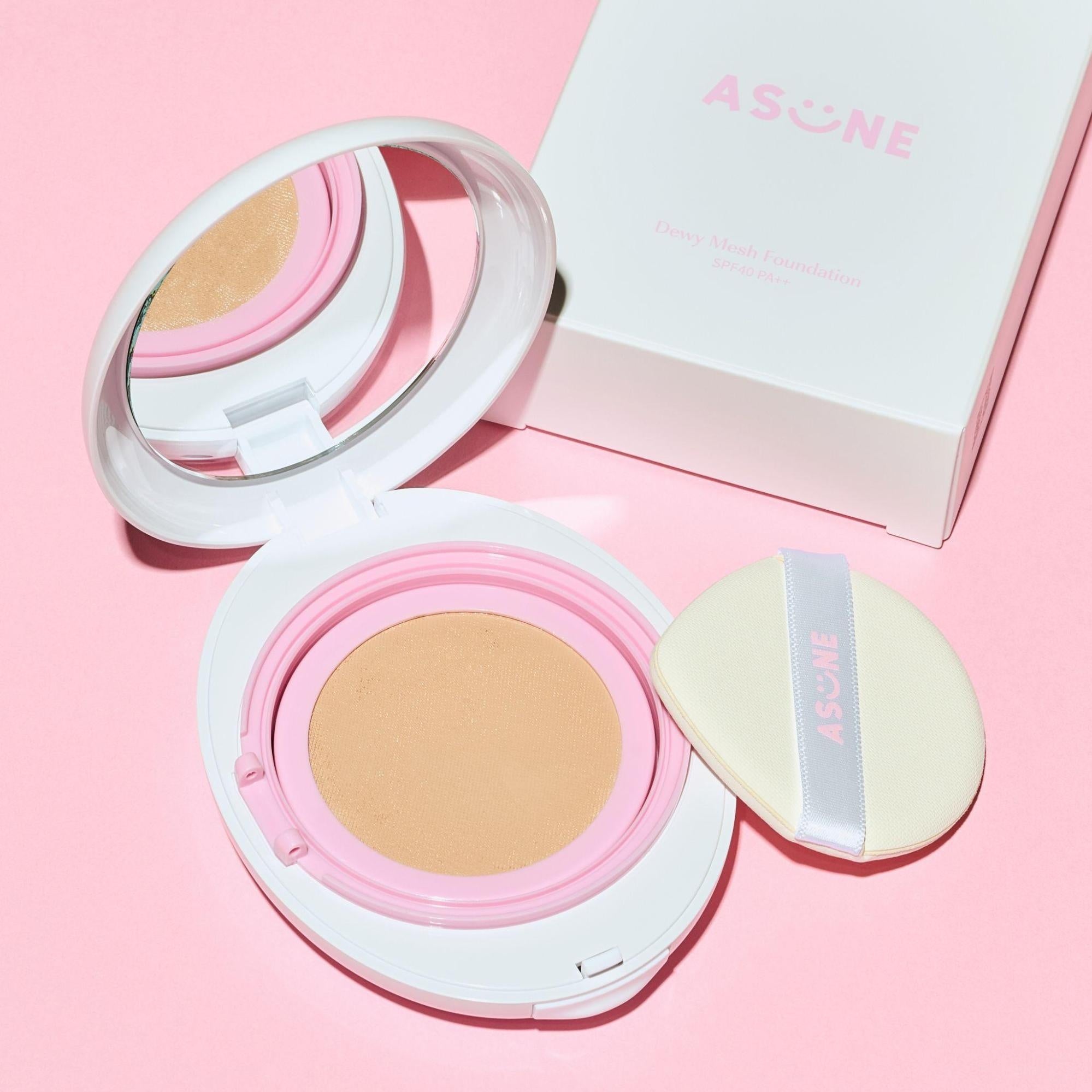 ASUNEの新商品「デューイーメッシュファンデーション」は軽い付け心地で肌に密着し、ひと塗りで簡単にツヤめく肌を演出。