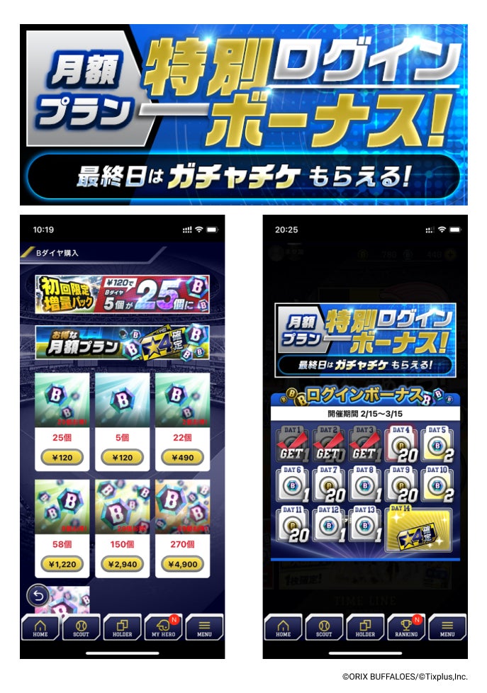 月々480円でご加入頂くと、毎日Bダイヤやガチャチケットをおトクに入手することができる購入者様限定のログインボーナスが発動します。
