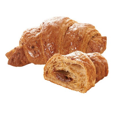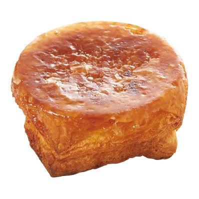 キャラメル風味のデニッシュ生地に、ザラメ入りのザクザクしたビスケット生地を重ねて、塩味を効かせたキャラメルクリームを巻き込んだスイートクロワッサンです。