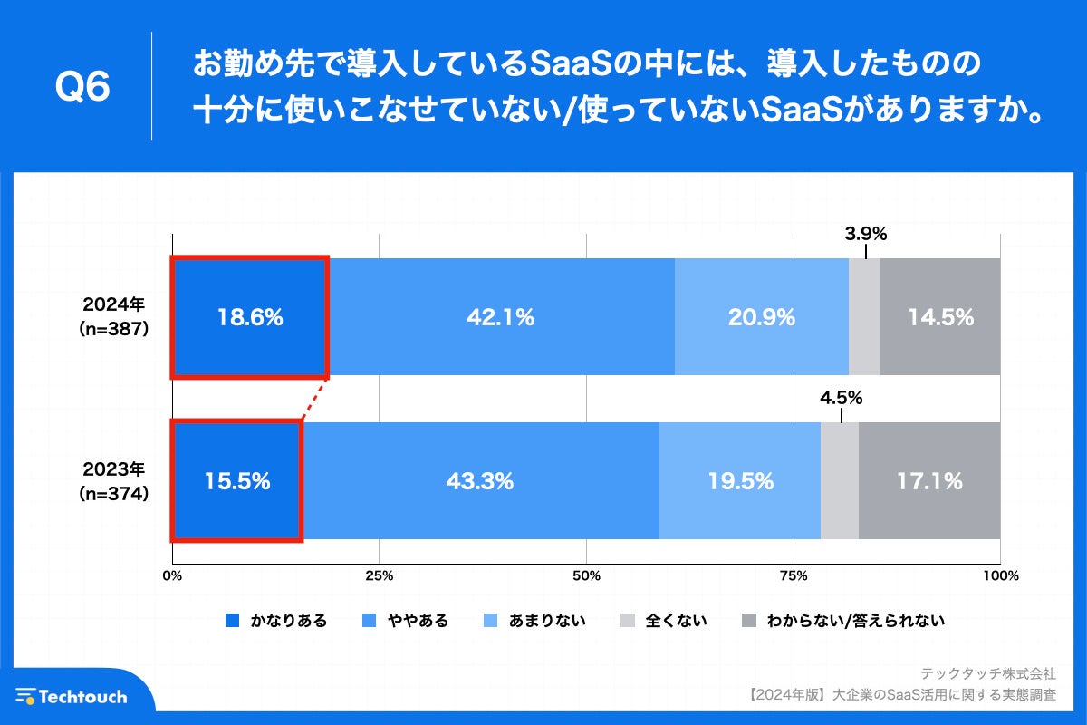 02|「十分に使いこなせていないSaaSがある」大企業は60.7%。2023年比で「かなりある」が上昇