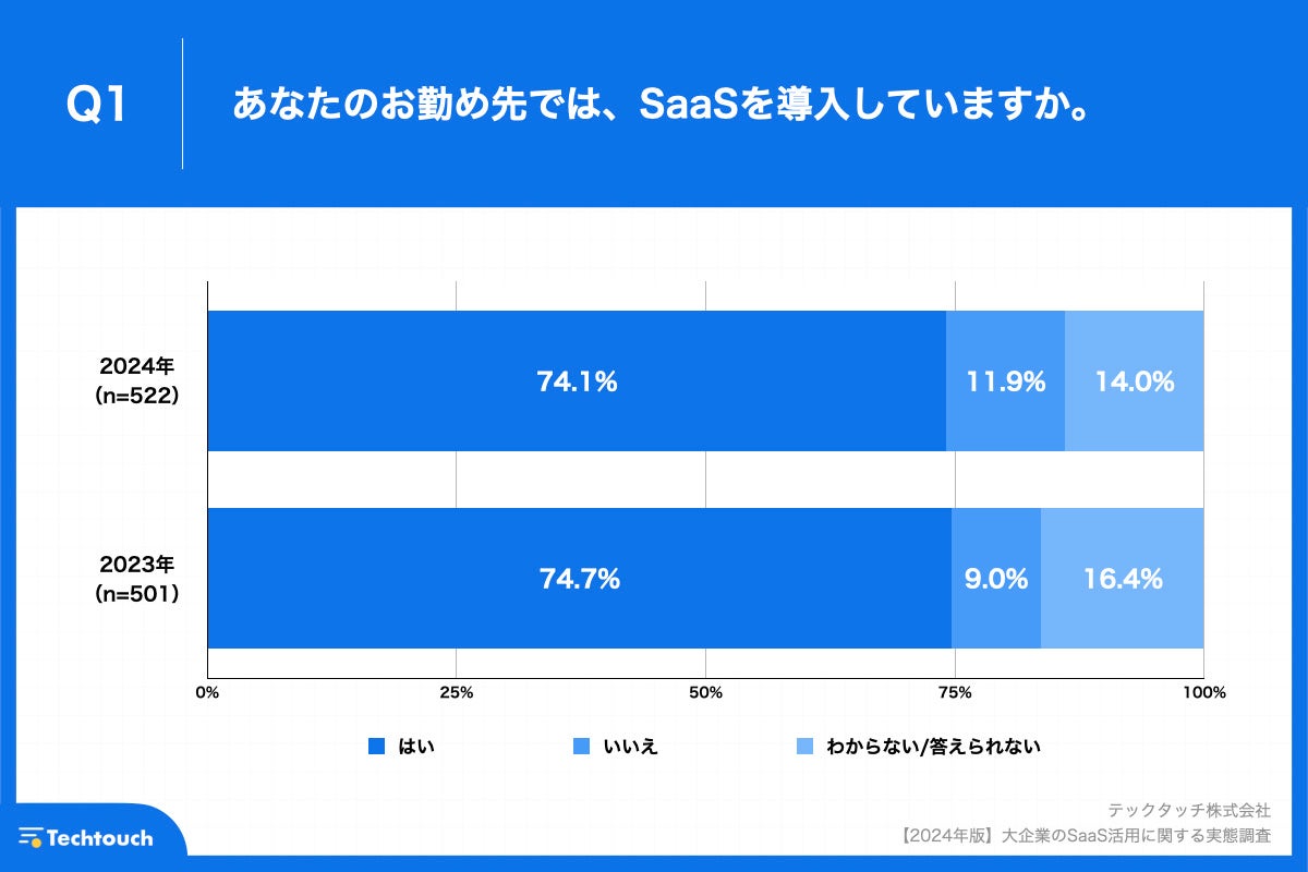01|大企業が導入しているSaaSの導入率は74.1%で2023年とほぼ同水準に
