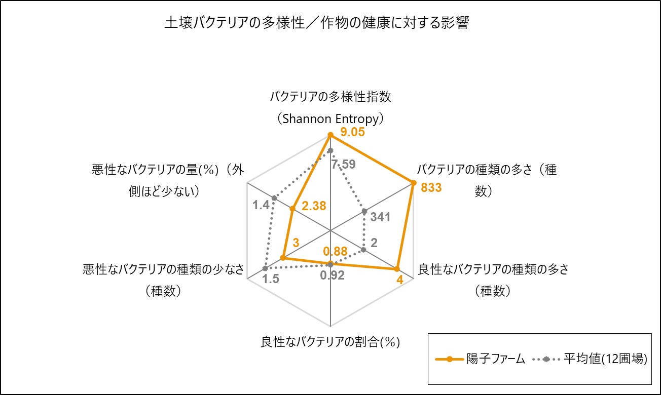 世界農業遺産「武蔵野の落ち葉堆肥農法」が生み出す、微生物多様性が豊かな土壌が埼玉県所沢市にありっ!!バクテリアの多様性指数・種類の多さは、レーダーチャートMAX値!*2