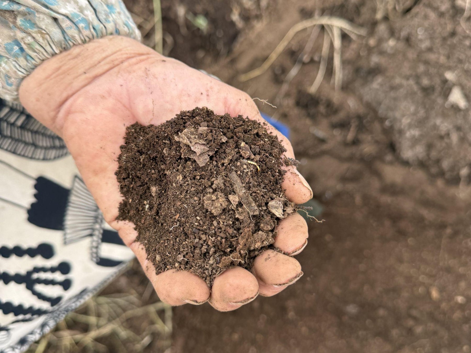 ここは、色んな草が生える荒れ地のような状態だった4年前から、驚異のスピードで土壌再生が行われた畑です。その指標のひとつが、土壌中の炭素貯留量(CO2吸収率)。なんと2021年5月から2024年10月にかけて、約3倍に爆増しました!