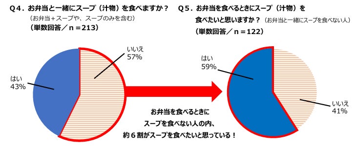 お弁当を食べるときにスープ(汁物)を食べていない人のうち、57%は「スープを食べたい」結果に!