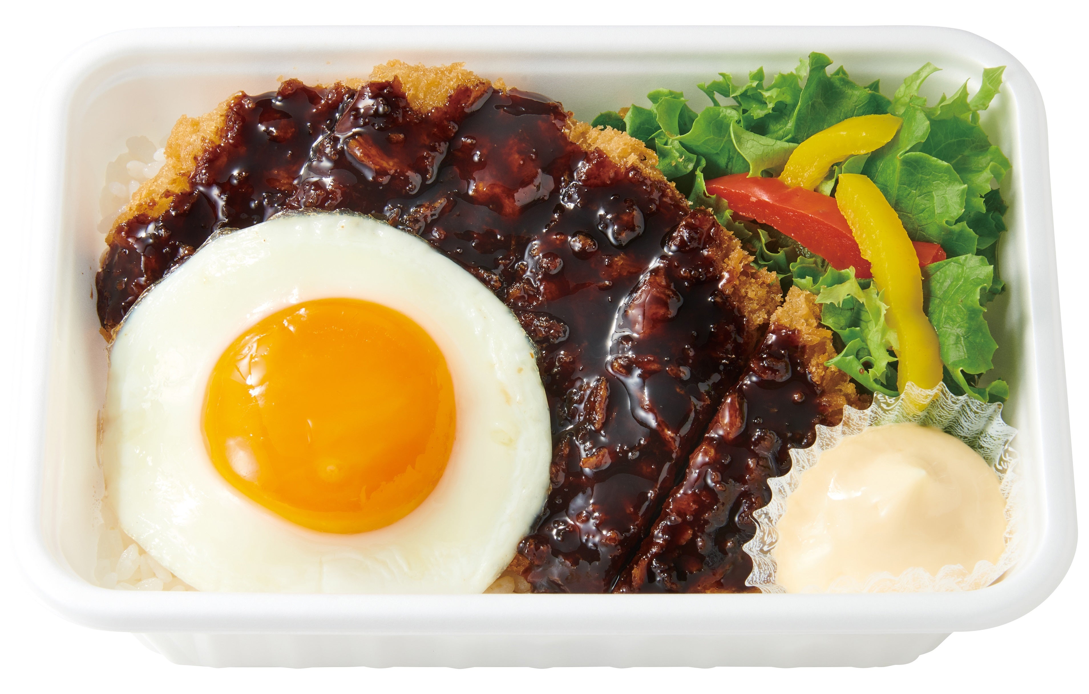 ロースとんかつを甘めの醤油だれで煮込み、玉子でふんわりとじた、人気商品です。たれは地域の好みに合わせて、東西で異なる味わいに仕立てています。