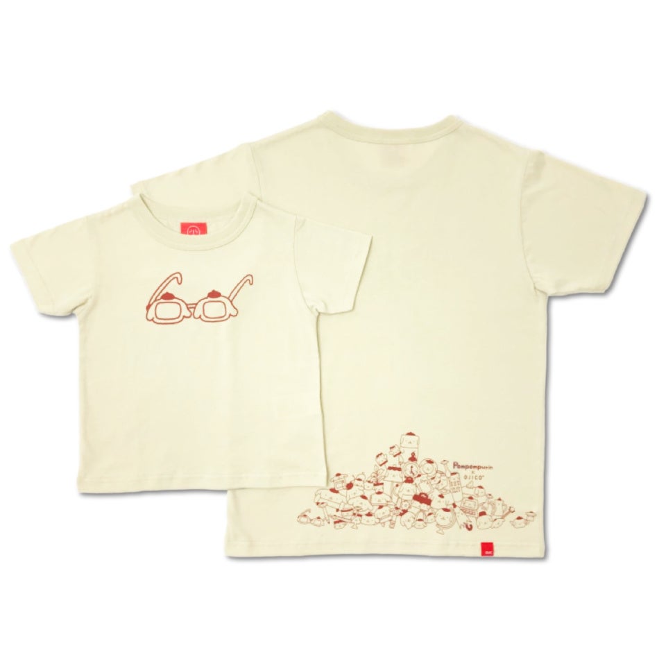 ポムポムプリン×OJICO 「うちわ」と「めがね」は、共通のバックプリントに仕立て、リンクコーデの提案としての一面も。