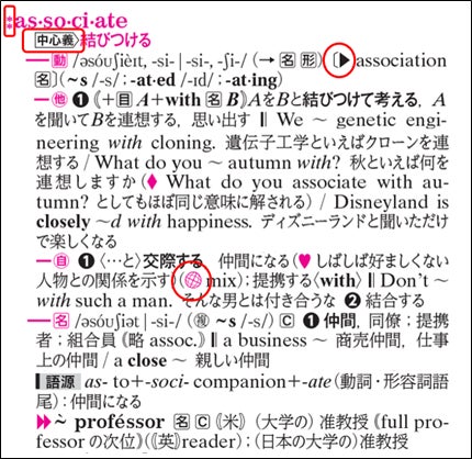 最重要の基本語は大きい赤字、重要語は赤字で表示。多義語は「中心義」で意味が一目でつかめます。また、ボキャブラリー・ビルディングに役立つ他品詞形、同意語・類義語・反意語や、堅い語から日常的に使いやすい語へのパラフレーズを多数収録、入試によく出題される成句の訳語は太字で表示しています。