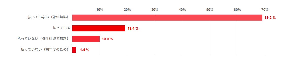 「払っていない(永年無料)」が69.2%で最も多く、「払っている」が19.4%でこれに続いた。