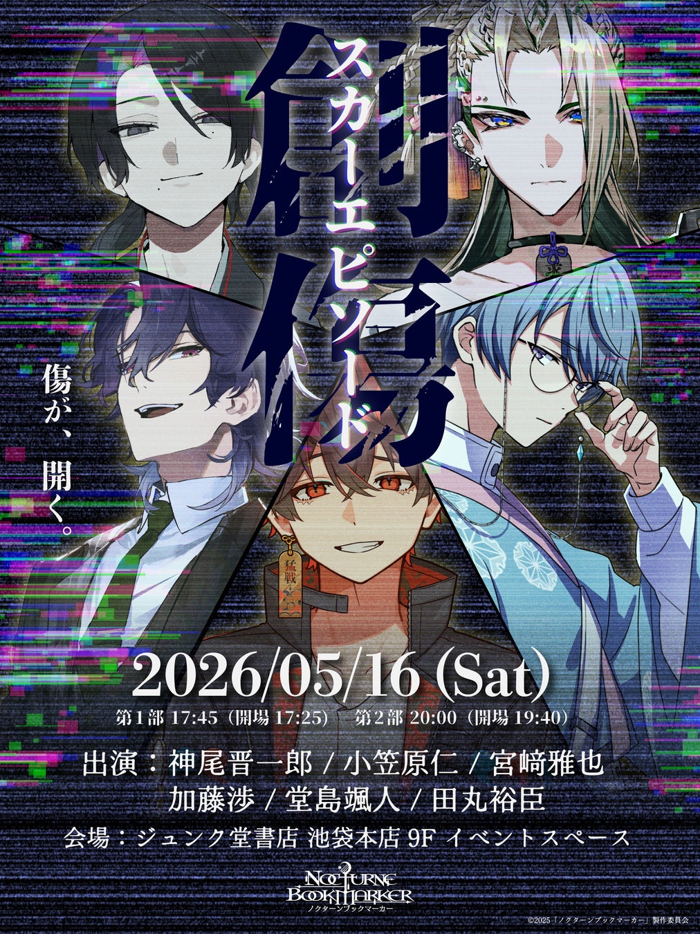 日販セグモ株式会社(本社:東京都千代田区、代表取締役:安井邦好)は、書店×物語連動型の新規メディアミックスプロジェクト「ノクターンブックマーカー」の世界を“声”で立ち上げるスペシャルリーディングイベント「スカーエピソード」を、2026年5月16日(土)にジュンク堂書店池袋本店にて開催いたします。
