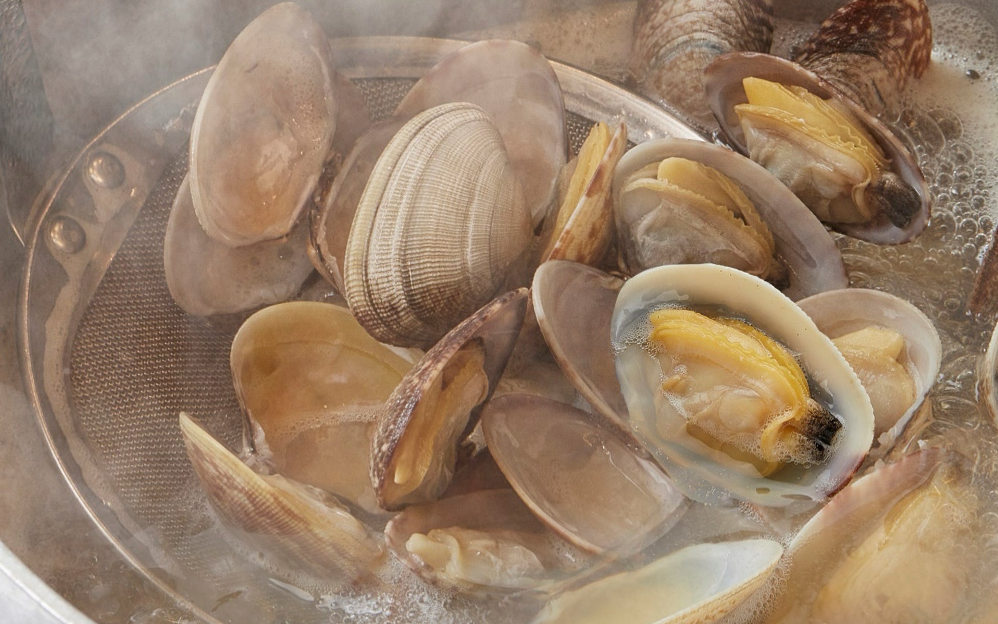 北海道産の真昆布、複数の削り節など厳選された素材から引く白だしは、作り置きせず、お店で数時間おきに引いています。そんなこだわりの白だしと殻付きあさりをご注文ごとにひと煮立ちさせ、磯の香りとあさりの旨みを最大限に引き出します。香り高い白だしにあさりの旨みが加わることで、ぐっと旨みが増し、奥深い味わいに。
