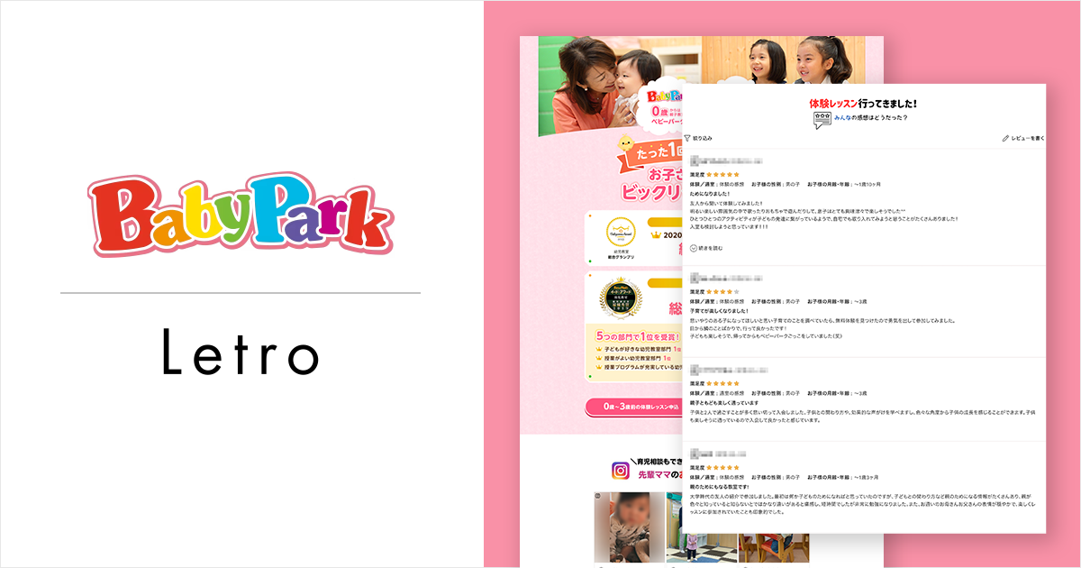 親子教室ベビーパークを運営する「TOEZ」がLetro導入開始、申し込みサイトへのレビュー掲載で申し込み率125%を実現