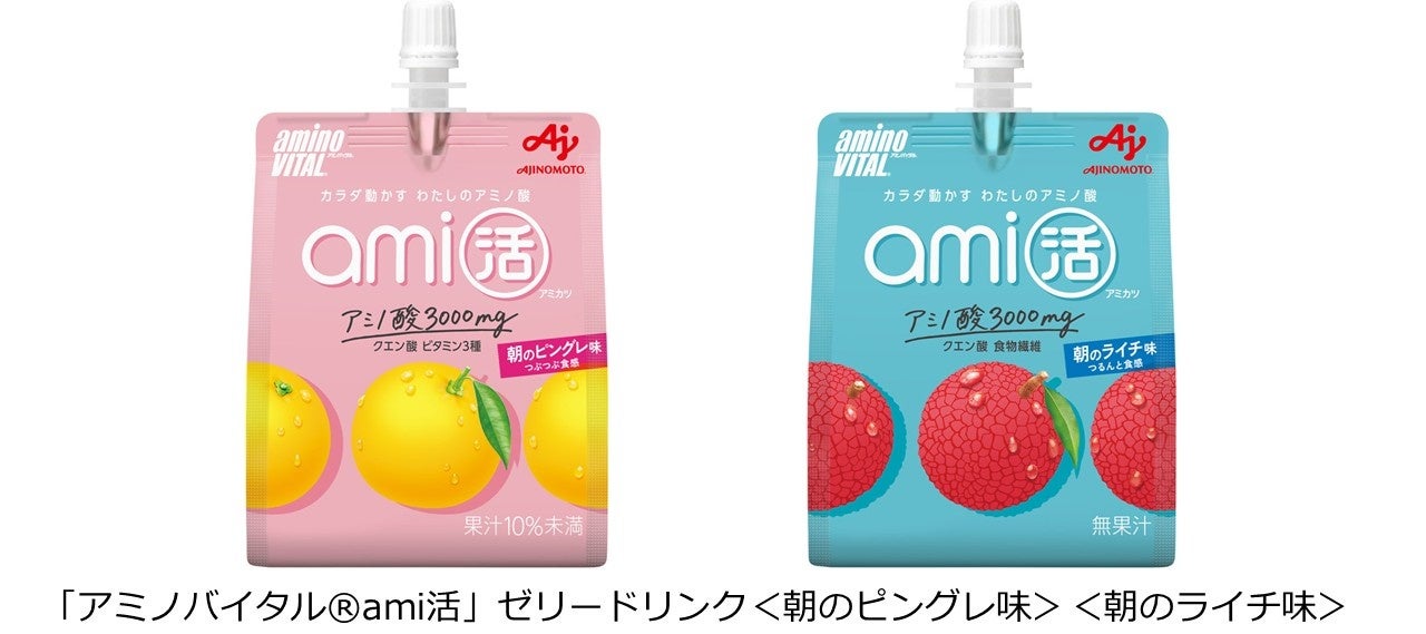 味の素株式会社(社長:藤江 太郎 本社:東京都中央区)は、からだに大切なアミノ酸をおいしく摂ることで、日々の運動習慣をサポートする「アミノバイタル®ami活」ゼリードリンク<朝のピングレ味><朝のライチ味>を、2025年2月22日(土)より全国で販売開始します。