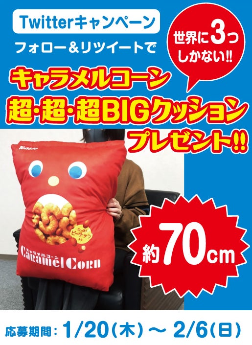 - 「世界に3つしかないキャラメルコーン超BIGクッション」が当たるTwitterキャンペーンを開催