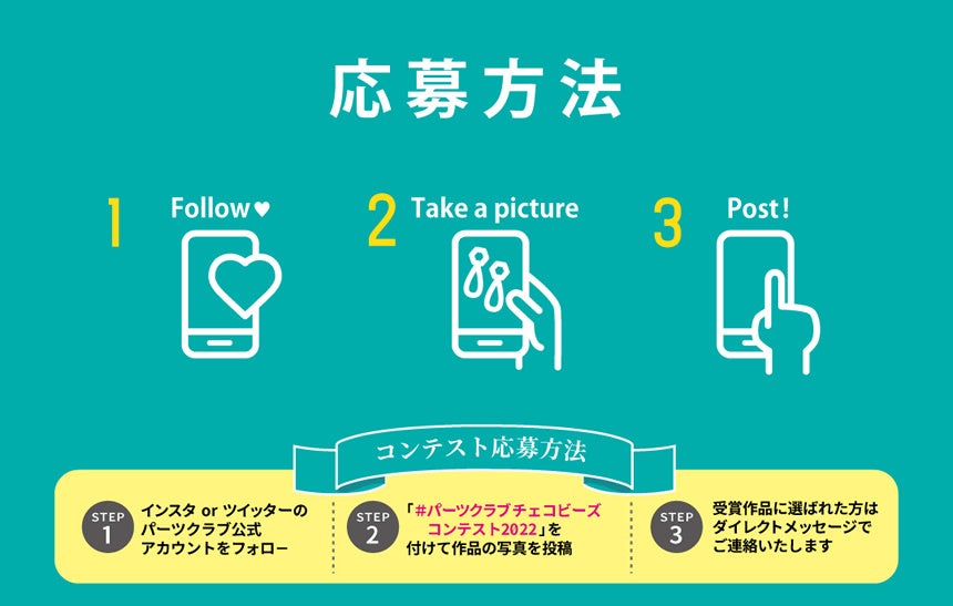 ②ハッシュタグ「#パーツクラブチェコビーズコンテスト2022」を付けて作品の写真を投稿!