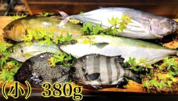 真鯛、シマアジ、カンパチ、ヒラマサ、ブリ、マグロ、カツオ、イシダイ、イシガキダイ、イサギ、マス、サクラマス、ヒラメなど伊勢志摩でその日揚がった鮮度の良い魚 3種(380g)を提供している。