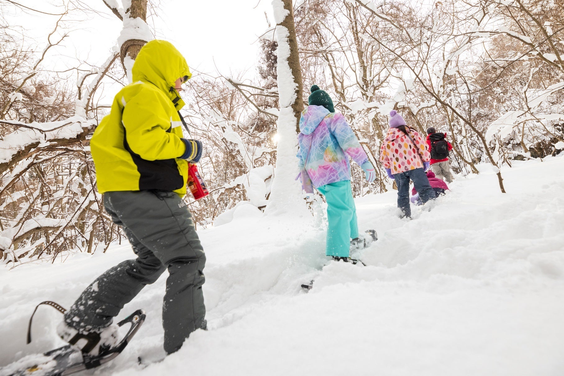 西洋かんじき「スノーシュー」を履いて、十和田湖の冬の森を歩く冒険です。平坦な森歩きのみのショートコース、展望所を目指すミドルコース、思うがまま冒険するロングコースの3つから選べます。
