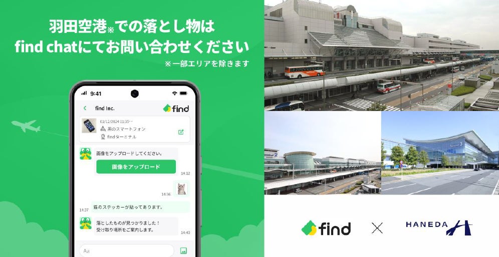 日本空港ビルデング株式会社と東京国際空港ターミナル株式会社は、株式会社findが提供する「落とし物クラウドfind」を3月12日より国内空港で初めて導入します。多言語対応のチャット機能により、羽田空港第1・第2・第3ターミナル内(一部エリアを除く)でのお問い合わせをよりスムーズに行えるようになります。