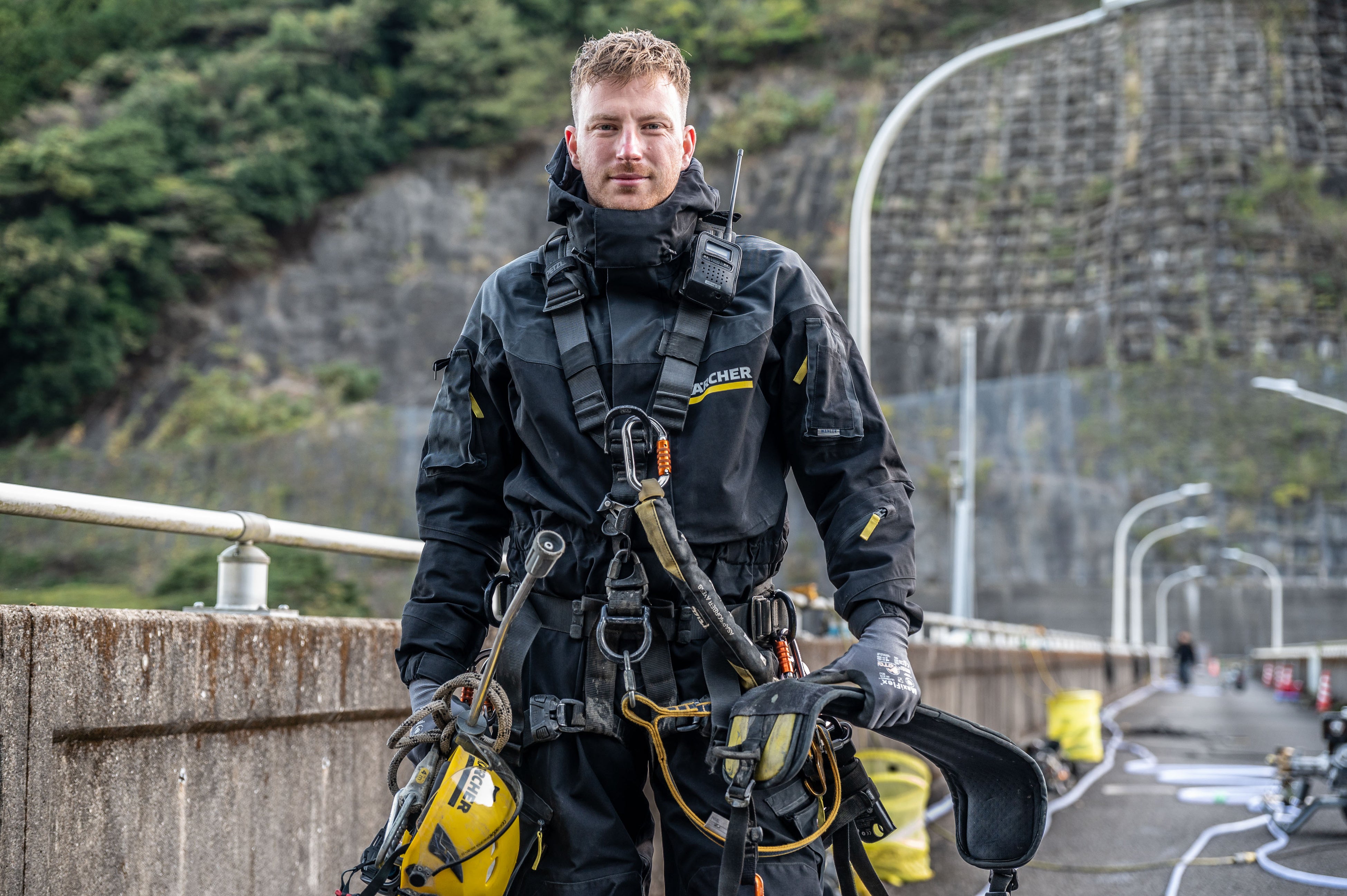 本プロジェクトでは「時を超え、侍を現代(いま)に描き出す」をテーマに、高圧洗浄機で壁面の汚れ(パティナ)や苔を除去して絵柄を浮かび上がらせる手法「リバース・グラフィティ」を採用。広大なダム壁面をキャンバスに見立て、壮大な「侍」の姿を出現させます。この大規模なプロジェクトを手がけるのは、ケルヒャーと共に数多くの作品を生み出してきたアーティスト、クラウス・ダオヴェン氏。同氏が足利・松田川ダムで制作を行うのは2008年以来であり、2026年、30周年を記念する特別なプロジェクトとして再びこの地に戻ってきました。