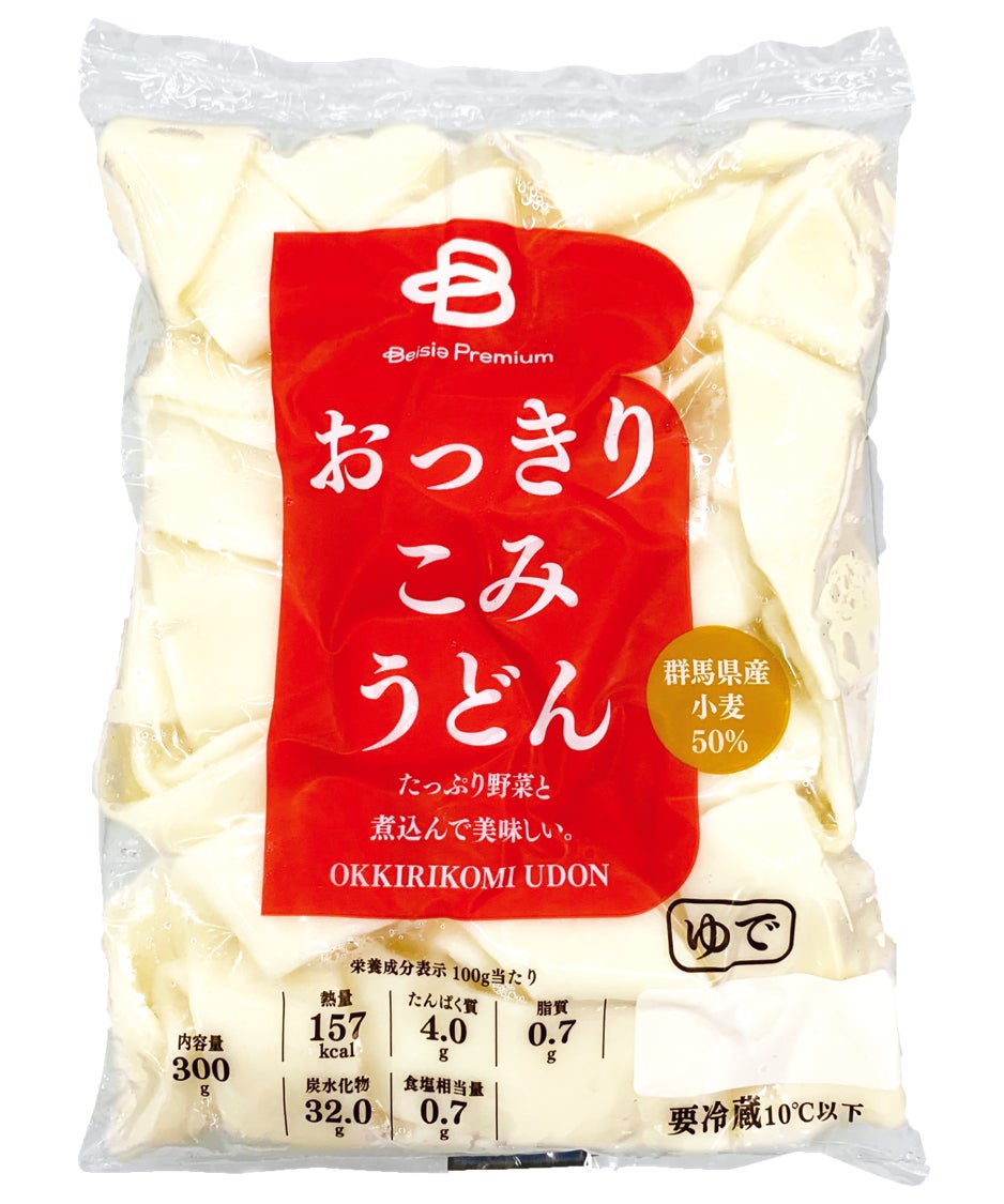 秋から冬にかけて楽しめる群馬名物といえば「おっきりこみ」。煮込んでおいしい幅広のうどんで、野菜との相性も抜群です。名産である群馬県産小麦を50%使用したこだわりの麺をぜひ一度お試しください。