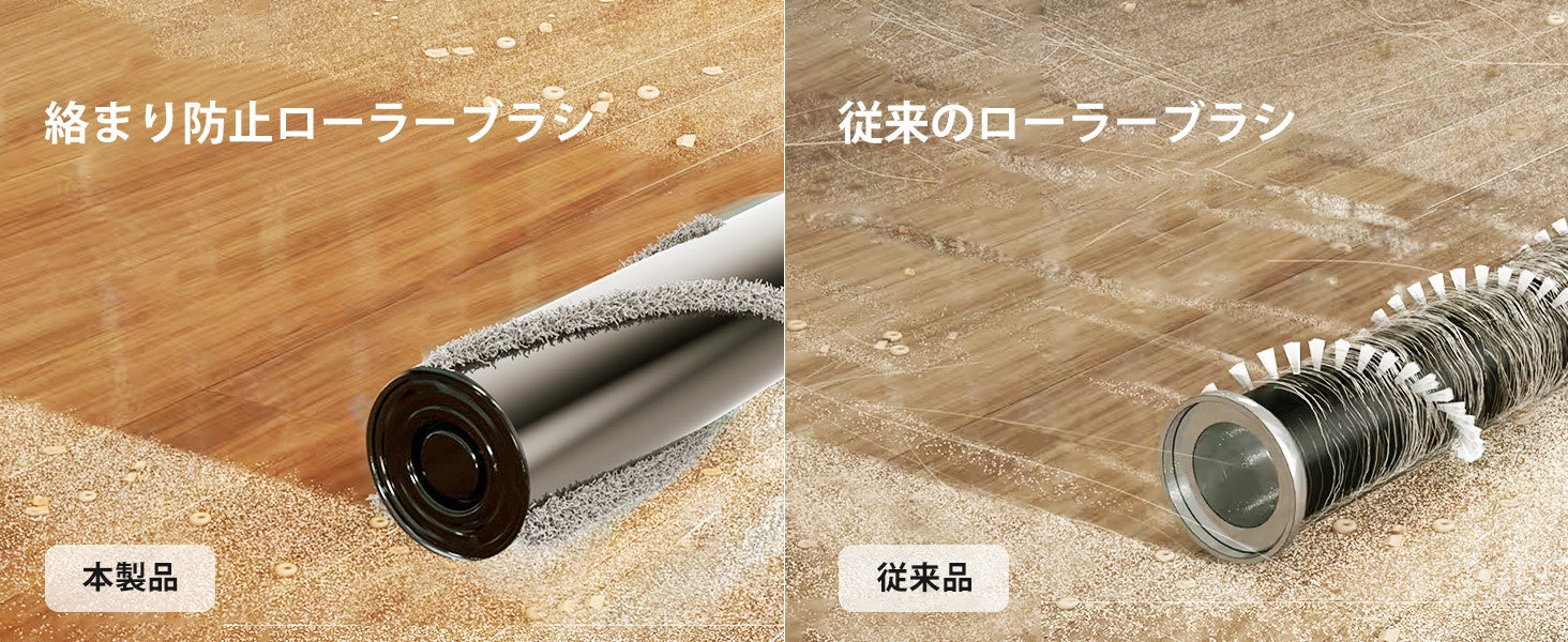 Proscenic P12コードレス掃除機は、最大33000Paの強力な吸引力と、Vertect緑色光ライトを採用し、しっかりとゴミを吸い取ります。新型デザインの絡まり防止ローラーブラシで、V字型デザインのブラシ及び内部の凹凸設計があり、 髪の絡まりを効果的に防止できます。