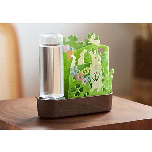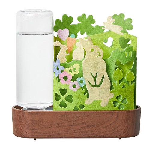 電気を使わない自然気化式のエコな加湿器です。水受けトレイは緑を多めに取り入れたイラストにマッチする木目調。愛嬌いっぱいのうさぎたちを草花と絡めたシルエットが可愛いだけでなく、加湿能力はコップ10杯分です。