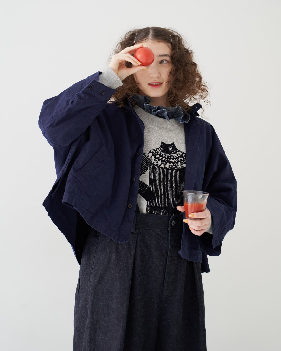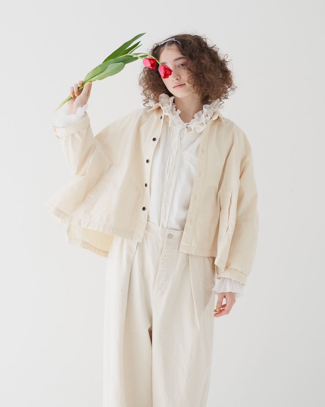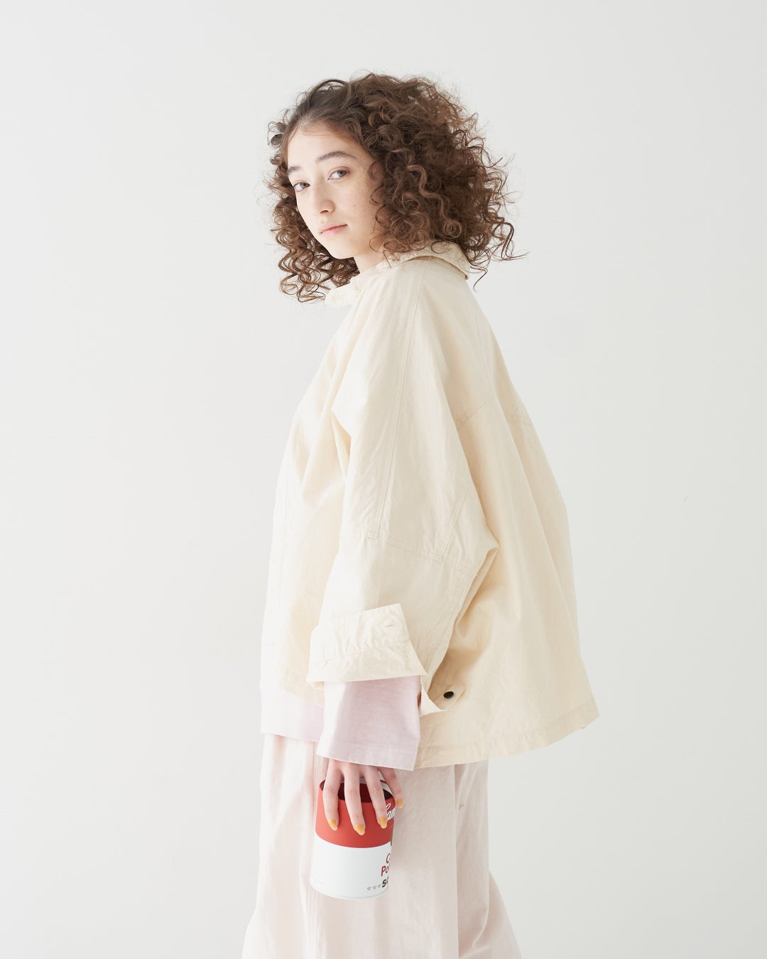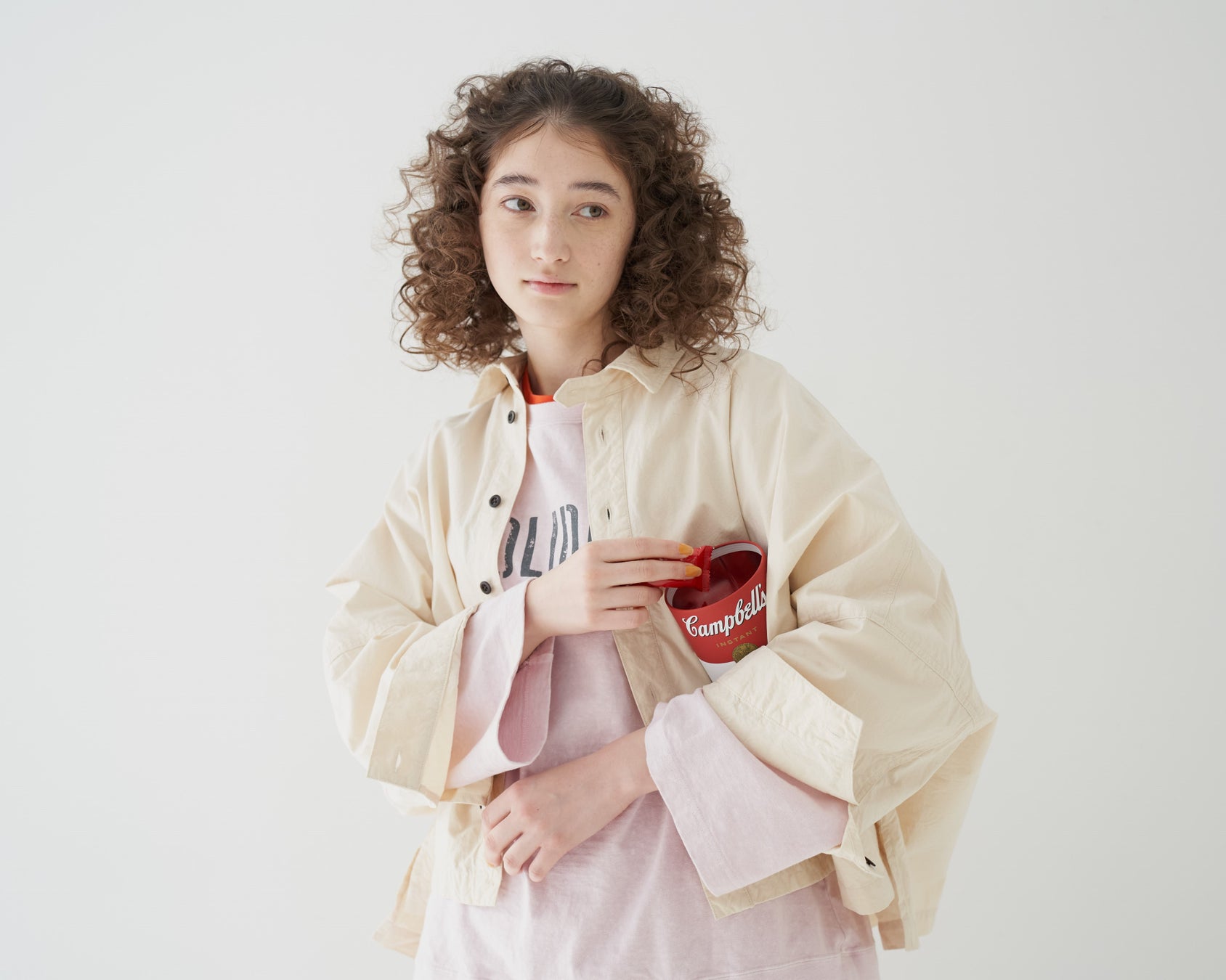 一重仕立てのシャツジャケット。たっぷりとした身幅で、ボリューム感がありながら、短めの着丈でバランスよくご着用頂けます。さらに、中に厚手のニットやスウェットも仕込めるので、オールシーズンお楽しみ頂ける1枚となっております。