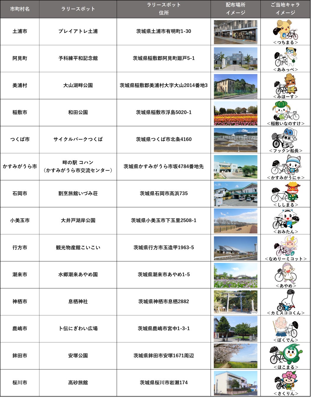 ■ラリースポット・ご当地キャラクター一覧