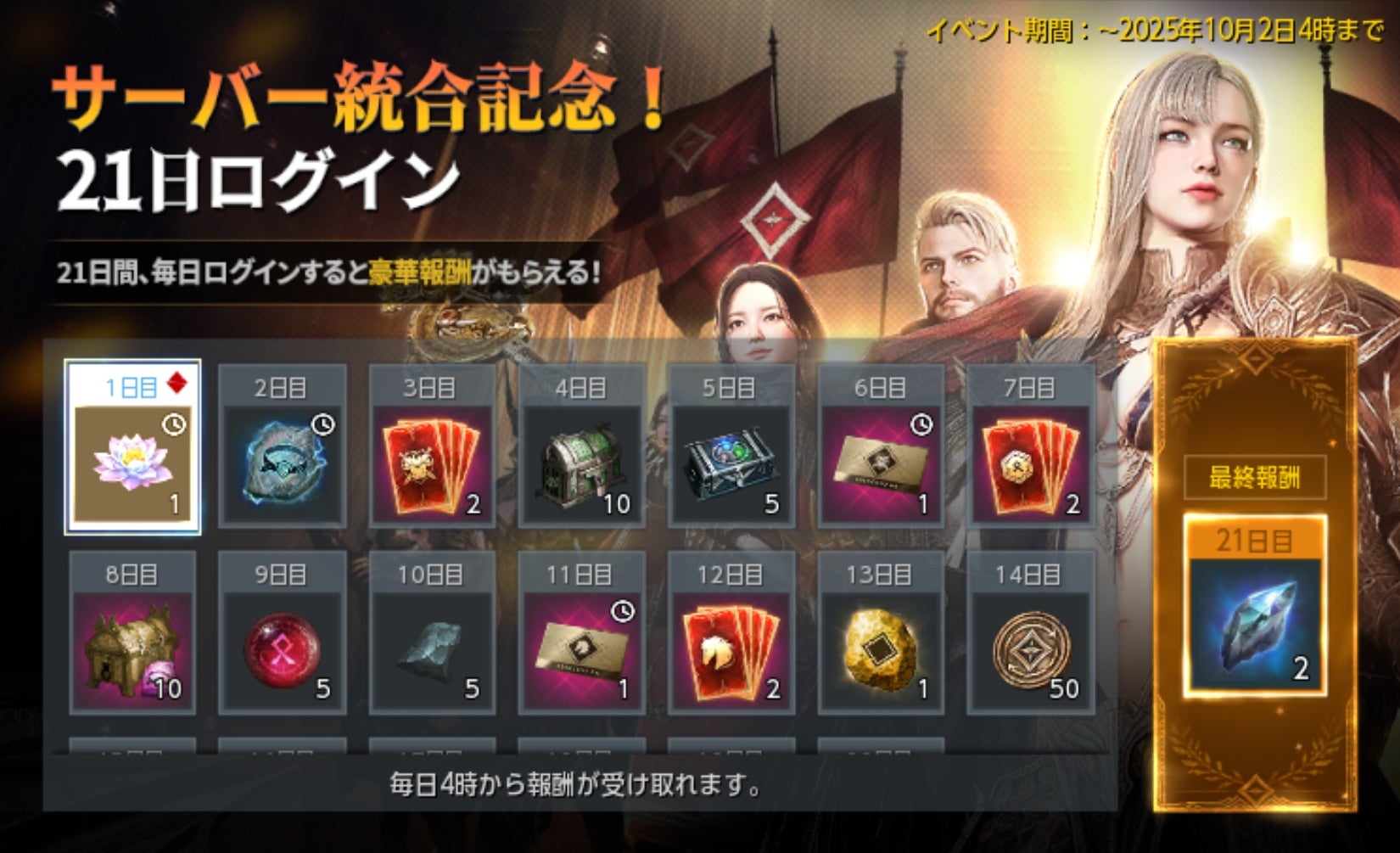 ▶︎「サーバー統合記念!21日ログイン」イベント期間