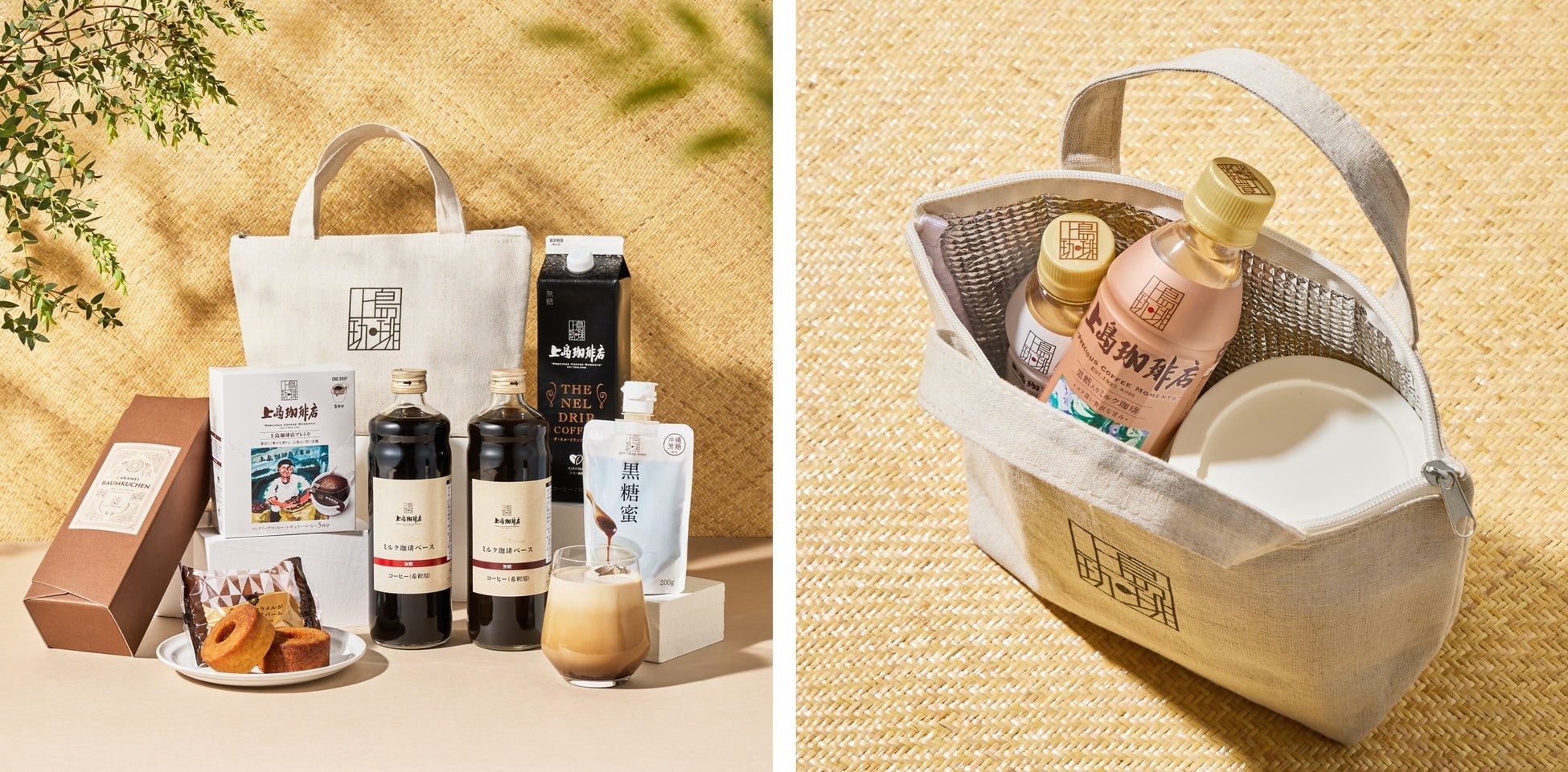 『上島珈琲店』の味わいがおうちでも楽しめる、『上島珈琲店』の店舗や公式ECでしか買えないアイテムを中心に、詰め合わせました。コーヒーと合わせて楽しみたい『焦がしキャラメルがしみこんだバームクーヘン』も入って夏のピクニックにもおすすめ。