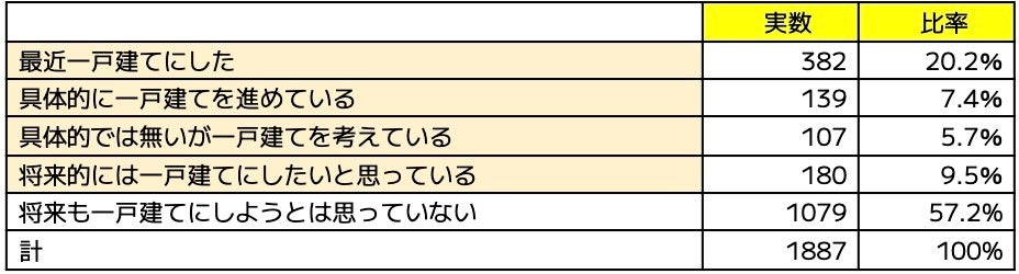 一戸建てに住む方の内、最近一戸建てにした方、建てるなら一戸建てを考えている方が回答