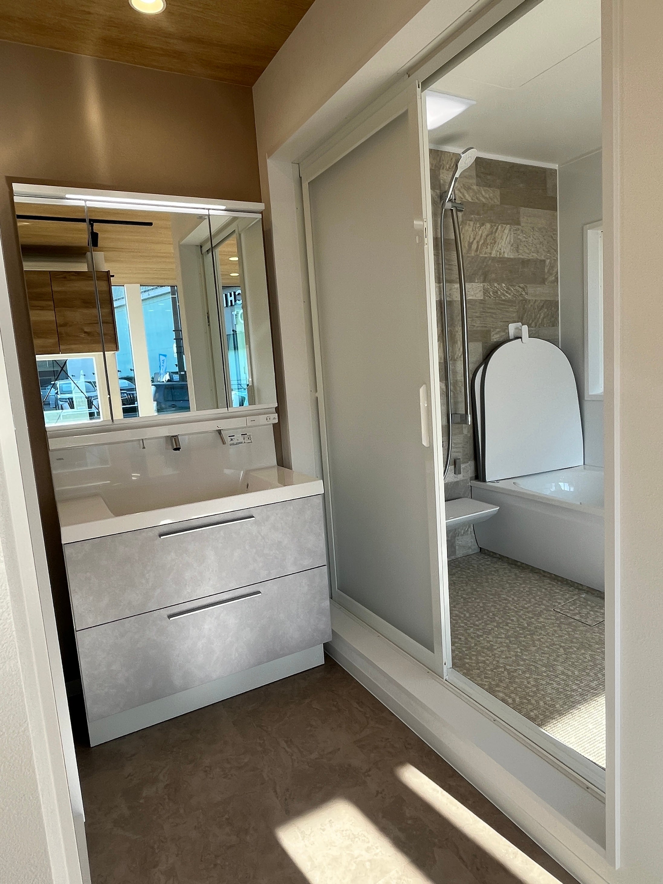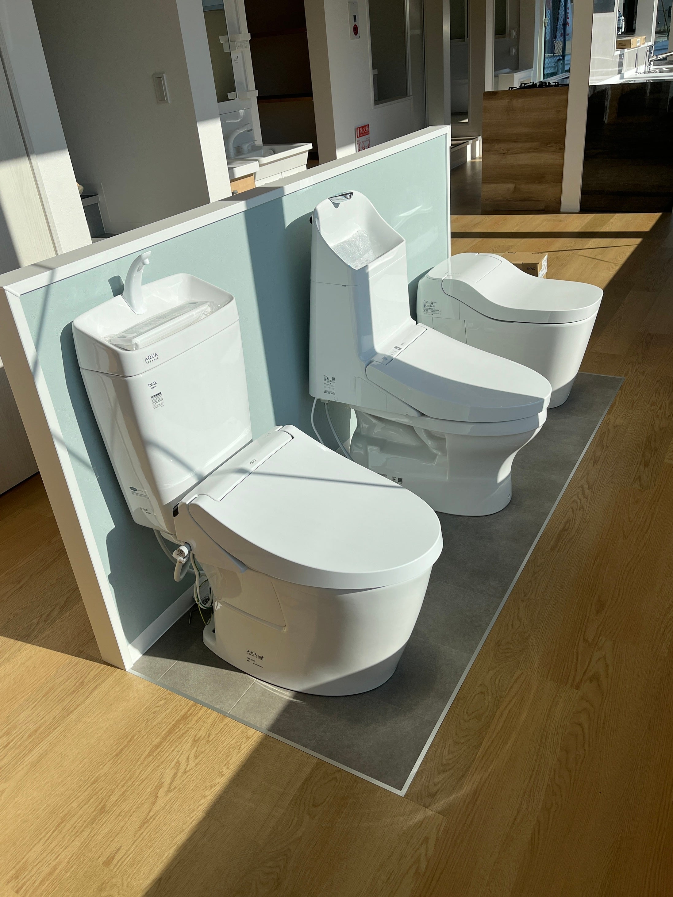 当ショールームには、キッチン3台・トイレ4台・洗面台3台・ユニットバス2台の水まわり商品の展示はもちろん、内装材や照明、外装材に至るまで、様々な商品を展示しております。