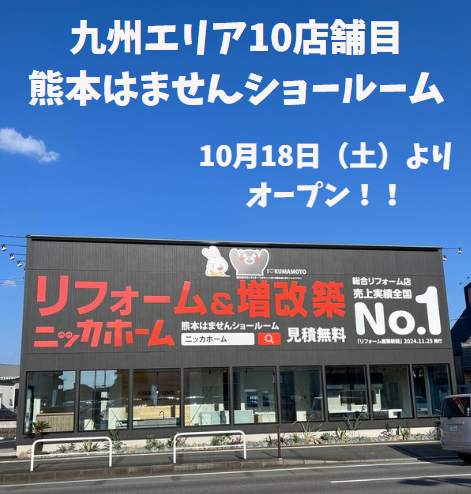 【熊本県内2号店】熊本市南区にニッカホーム熊本はませんショールームが10月18日(土)10時よりオープン!熊本市並びに近郊にお住いの皆様、この機会に是非とも熊本はませんショールームにお越しください!