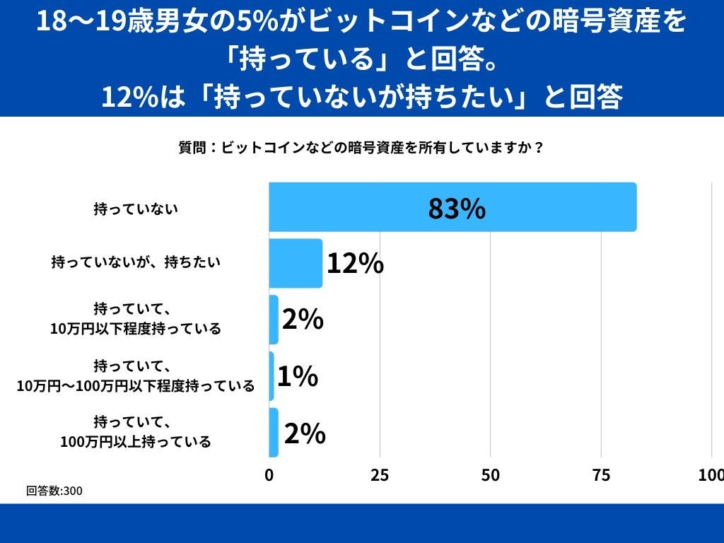 18~19歳男女の5%がビットコインなどの暗号資産を「持っている」と回答。12%は「持っていないが持ちたい」と回答【暗号資産に関するアンケート】