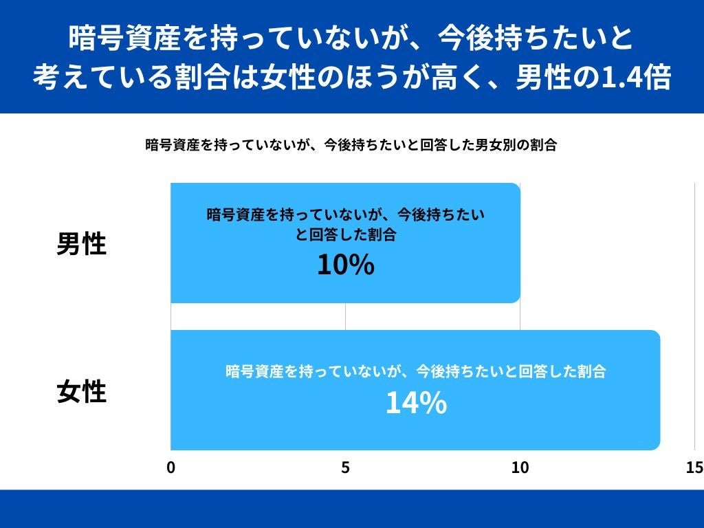 【暗号資産を持っていないが、今後持ちたいと考えている割合は女性のほうが高く、男性の1.4倍】