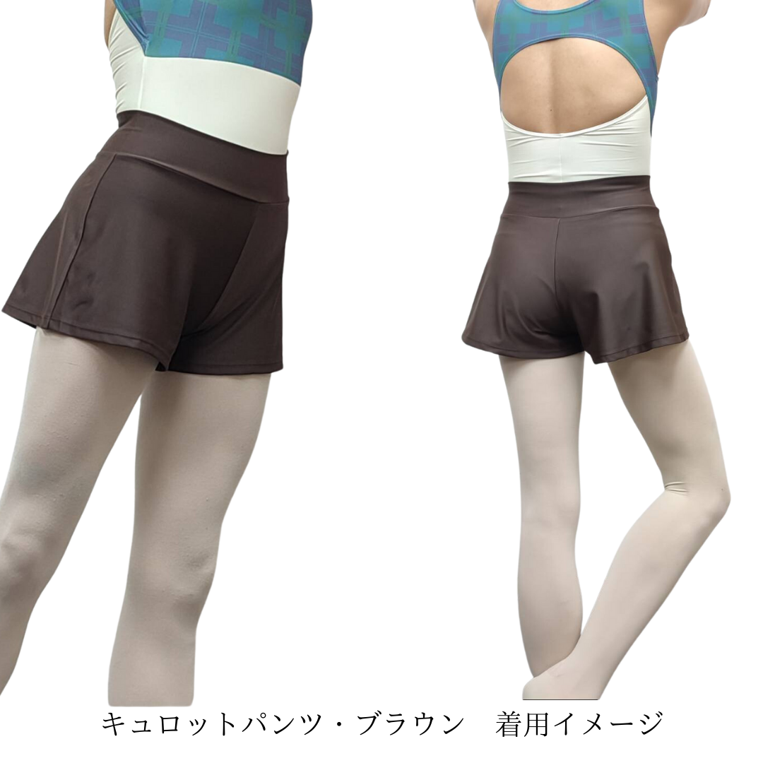 キュロットパンツはウエスト部分が締まっており裾が広がっているデザインで、脚が細く長く見えると人気の商品となっております。既存商品のブラック・カーキに加え、ブラウンが新登場。何色にも合うブラウンは、お客様からのご要望が多く寄せられ、この度仲間入りを果たしました。