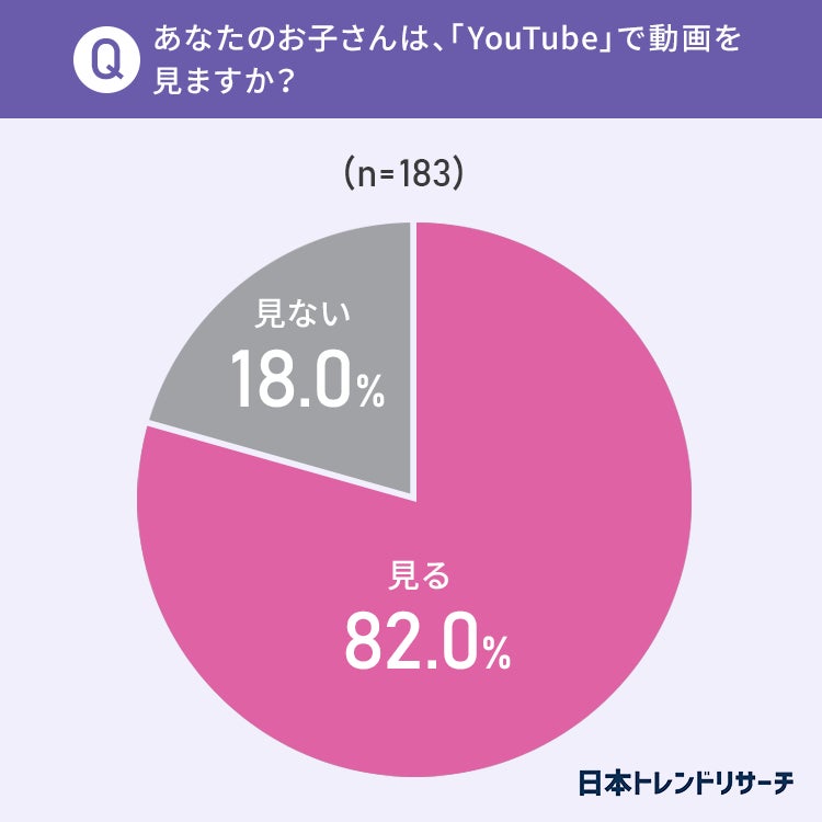 小学生以下の子供がいる方の82%が「子供がYouTubeを見ている」と回答し、今やYouTubeは子供から大人気のコンテンツになっているようです。