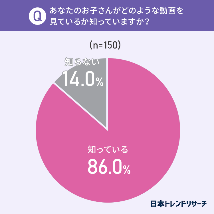 一方で「知らない」と回答した方も14%おり、YouTubeを見ているのは知っているが、その内容までは把握していないという方も少なくないようです。