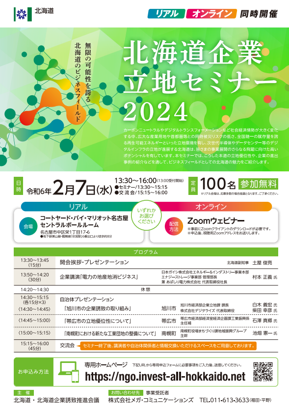 北海道企業立地セミナー2024(名古屋)を開催します!