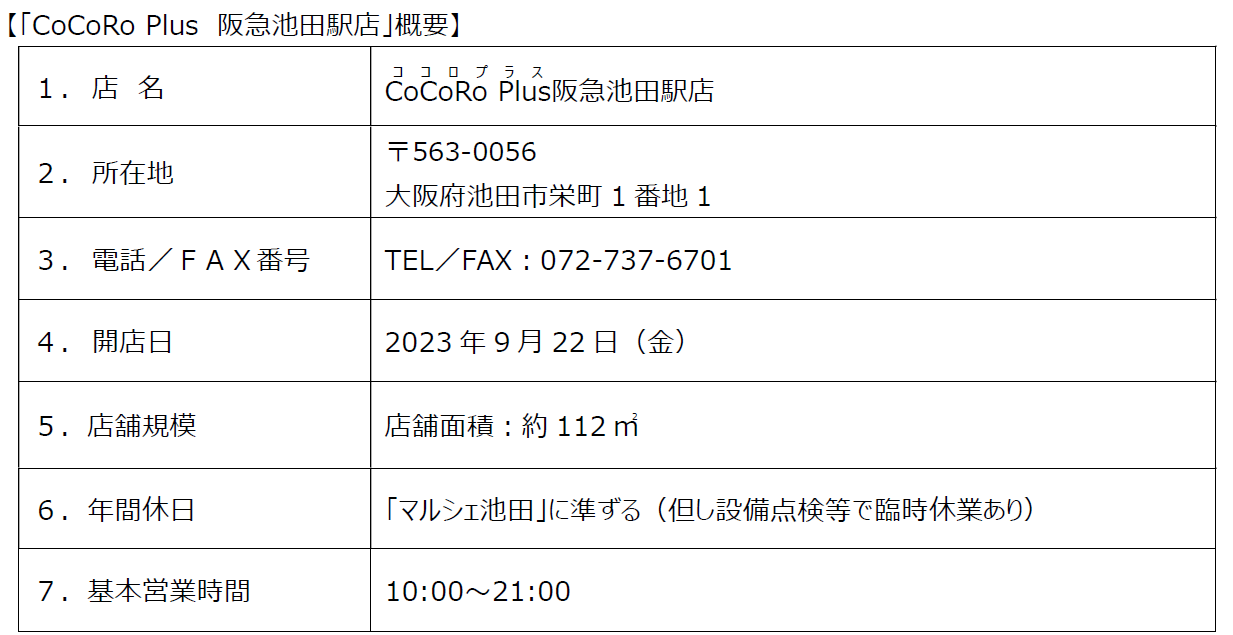 【平和堂】コスメ&バラエティストア「CoCoRo Plus阪急池田駅店」 開店のお知らせ
