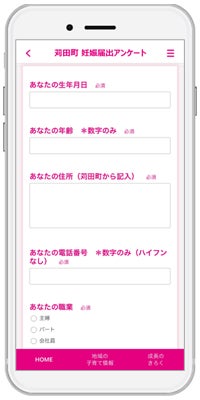 苅田町は『母子モ』の追加機能である「伴走型相談支援サービス」を導入することで、妊娠届出と出産応援金、子育て応援金の申請、妊娠届出時アンケート、妊娠8カ月アンケート、出産後アンケートの提出が、『母子モ』を通じてアプリから可能となり、時間や場所を問わず簡単にできるようになります。